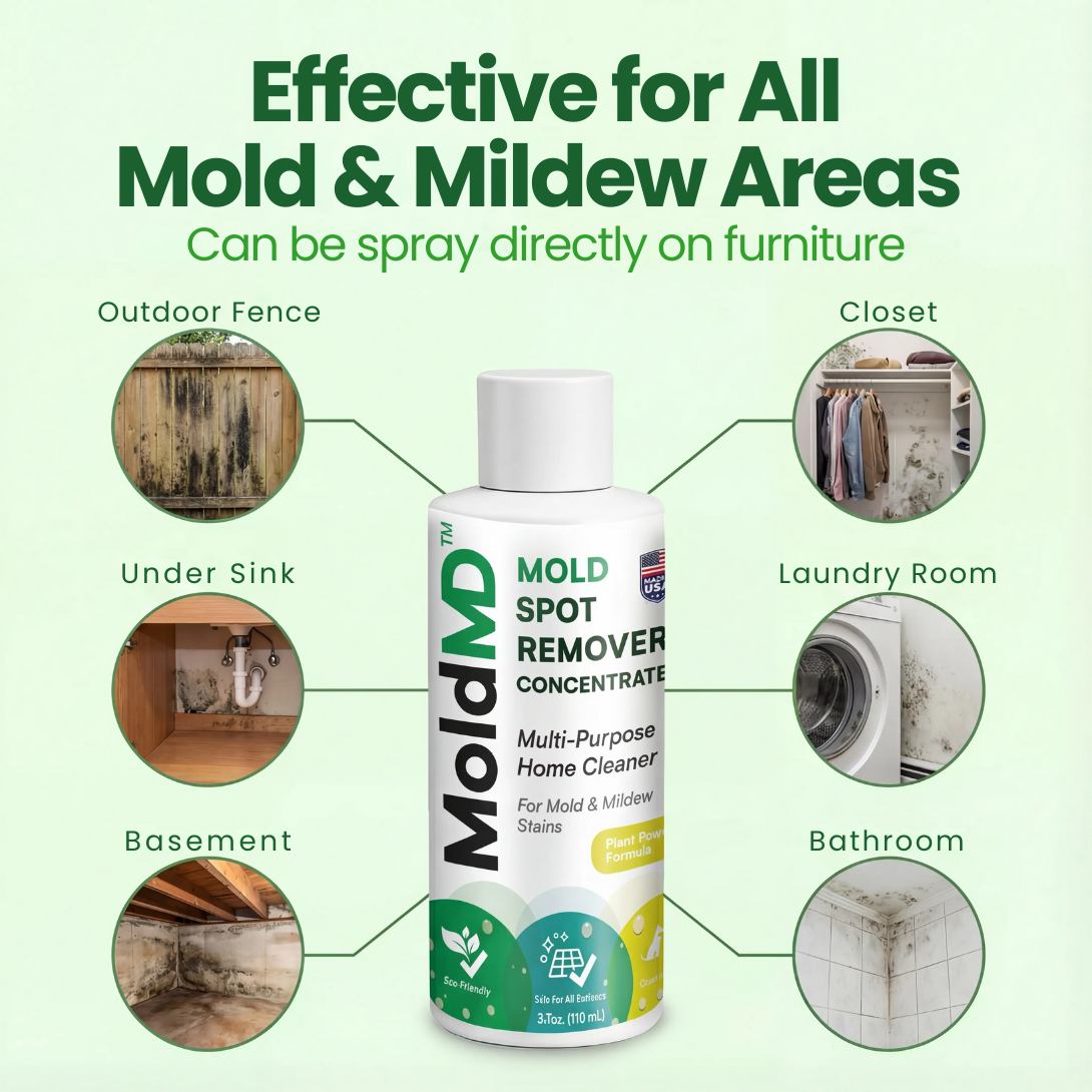 MoldMD's powerful spray is designed to remove surface spots & stains and eliminate the mold roots hiding below, without the harsh chemicals. With MoldMD, you get a professional grade solution that protects your home, furniture, and more!