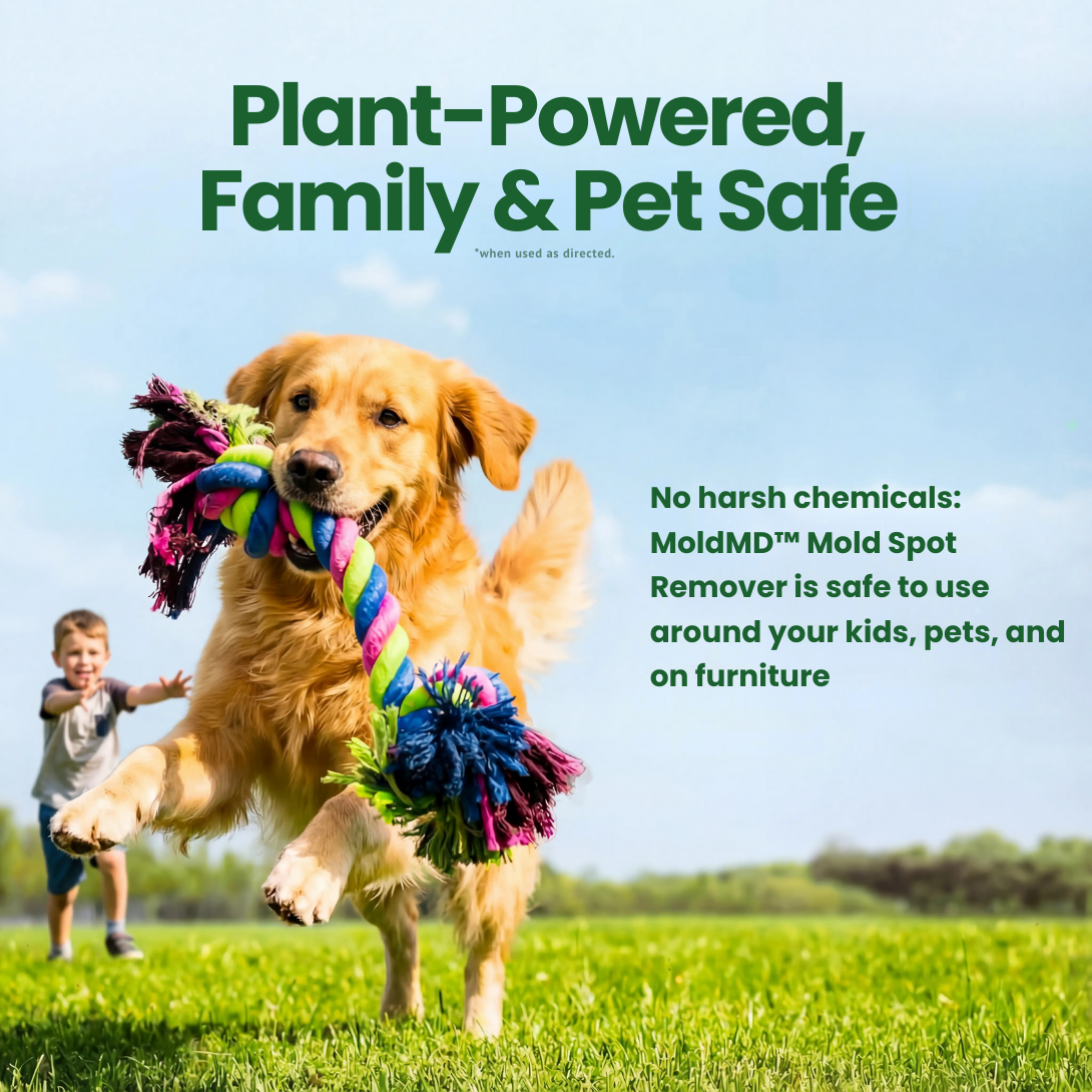Store-bought sprays contain harsh synthetic chemicals that many families prefer to avoid spraying in their homes, especially around kids and pets. MoldMD uses a proprietary blend of plant-based enzymes, giving you peace of mind that you're not exposing your family to toxic residues while still achieving superior elimination power. You get effective mold control without the guilt of spraying dangerous chemicals around your children and pets.