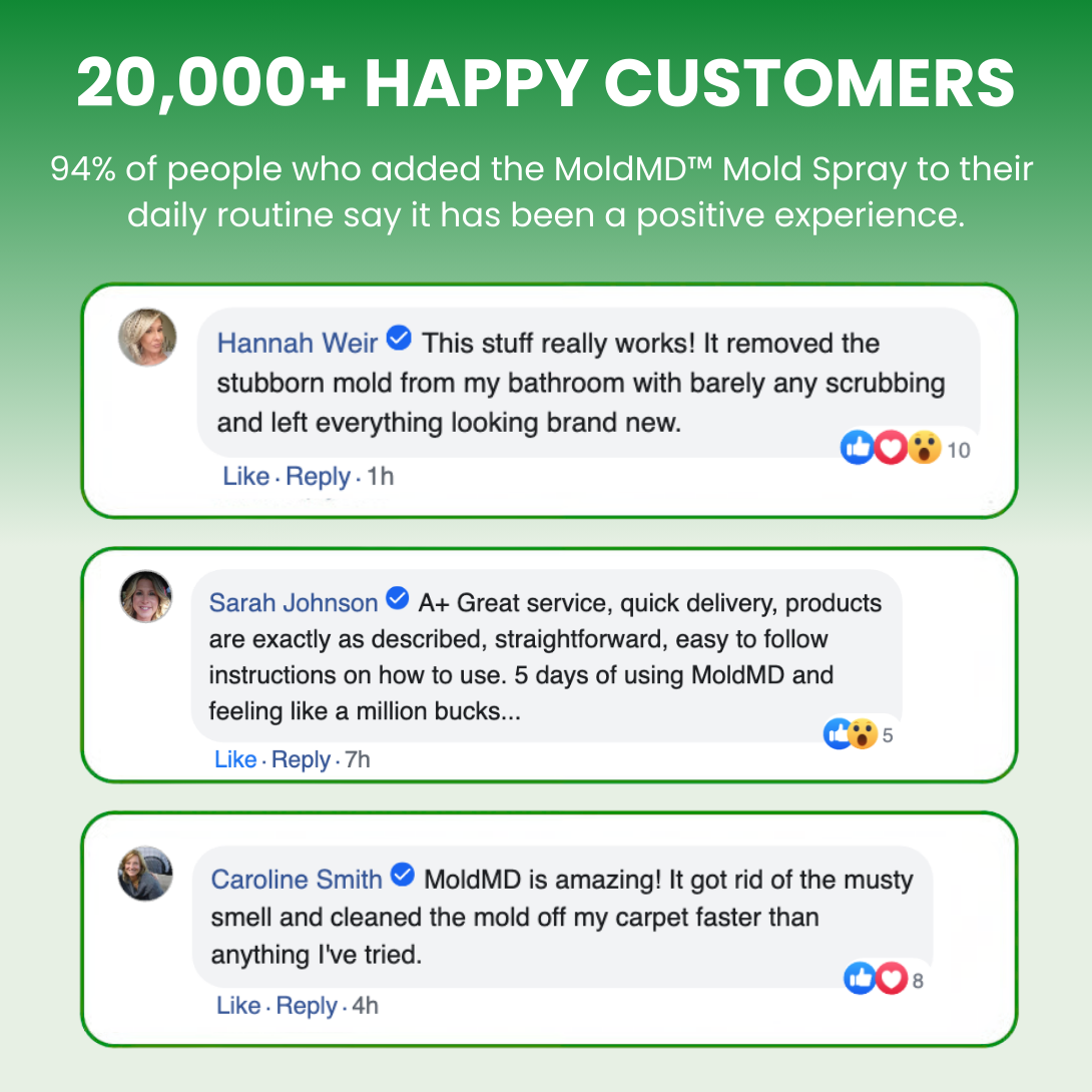 MoldMD has eliminated mold & mildew stain problems for thousands of verified success stories. Unlike products that make false promises, our plant-powered formula has been tested in real homes with severe infestations. Our satisfaction guarantee means our customer service team will work with you until your mold stain problem is solved.